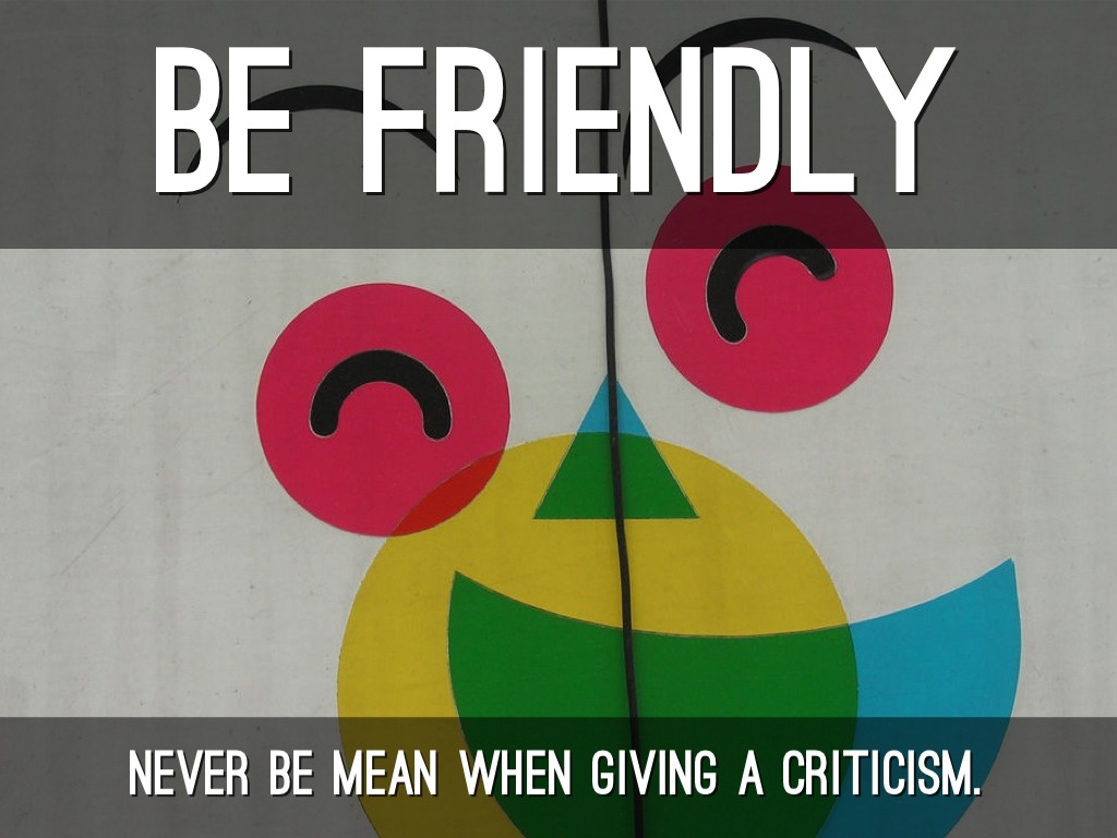 NEVER BE MEAN WHEN GIVING A CRITICISM.