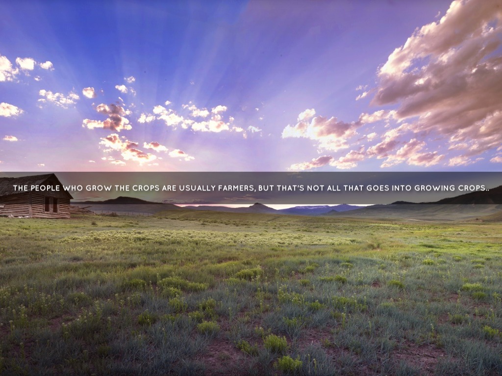THE PEOPLE WHO GROW THE CROPS ARE USUALLY FARMERS, BUT THAT'S NOT ALL THAT GOES INTO GROWING CROPS..