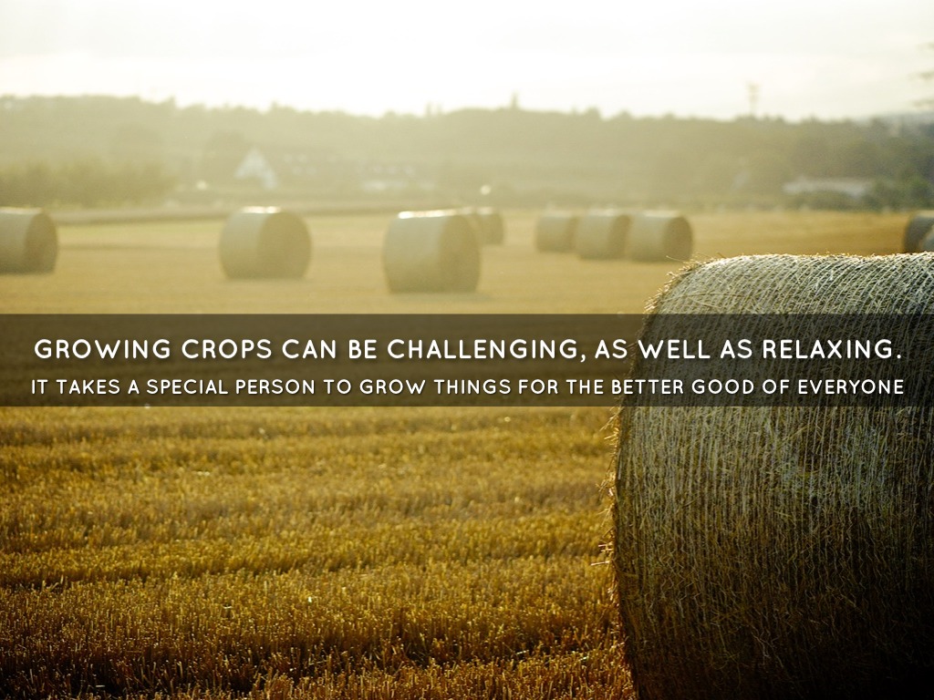 GROWING CROPS CAN BE CHALLENGING, AS WELL AS RELAXING.