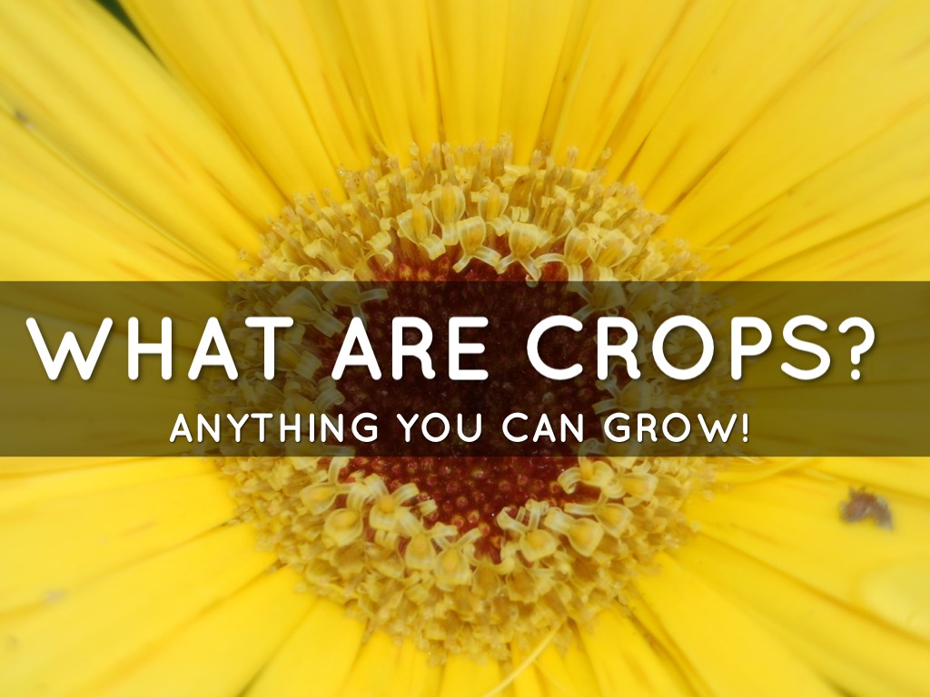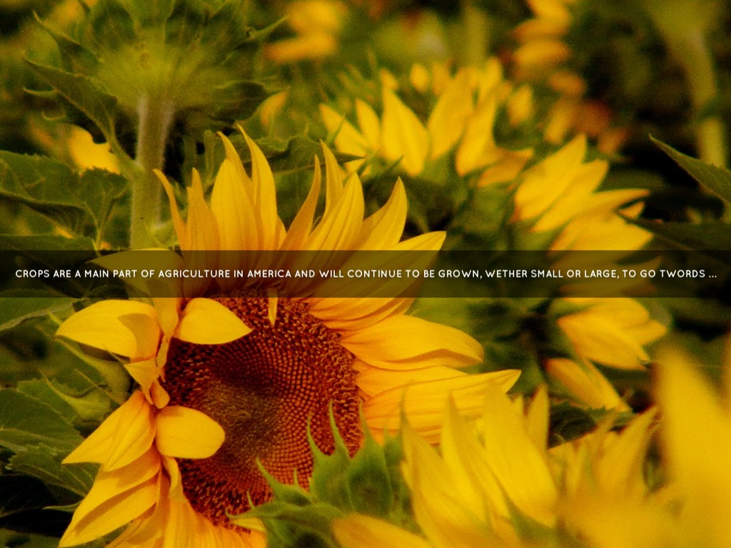 CROPS ARE A MAIN PART OF AGRICULTURE IN AMERICA AND WILL CONTINUE TO BE GROWN, WETHER SMALL OR LARGE, TO GO TWORDS THE MAKING OF THE THINGS WE ENJOY.