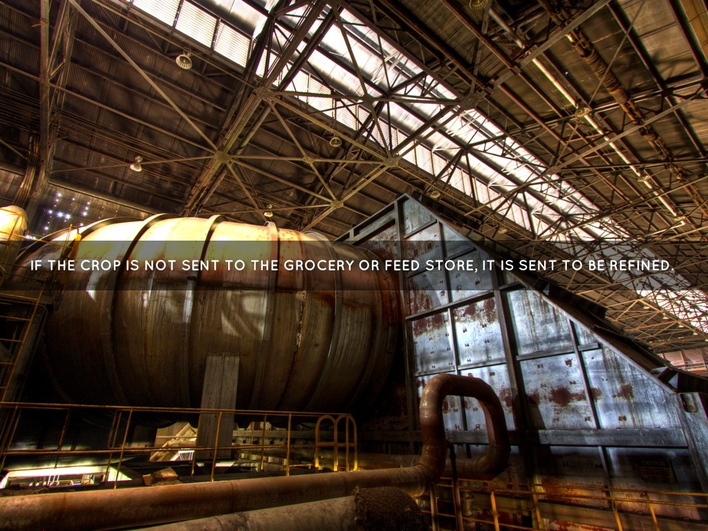 IF THE CROP IS NOT SENT TO THE GROCERY OR FEED STORE, IT IS SENT TO BE REFINED.