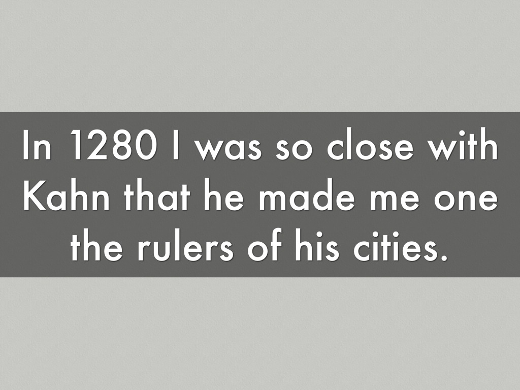 In 1280 I was so close with Kahn that he made me one the rulers of his cities.