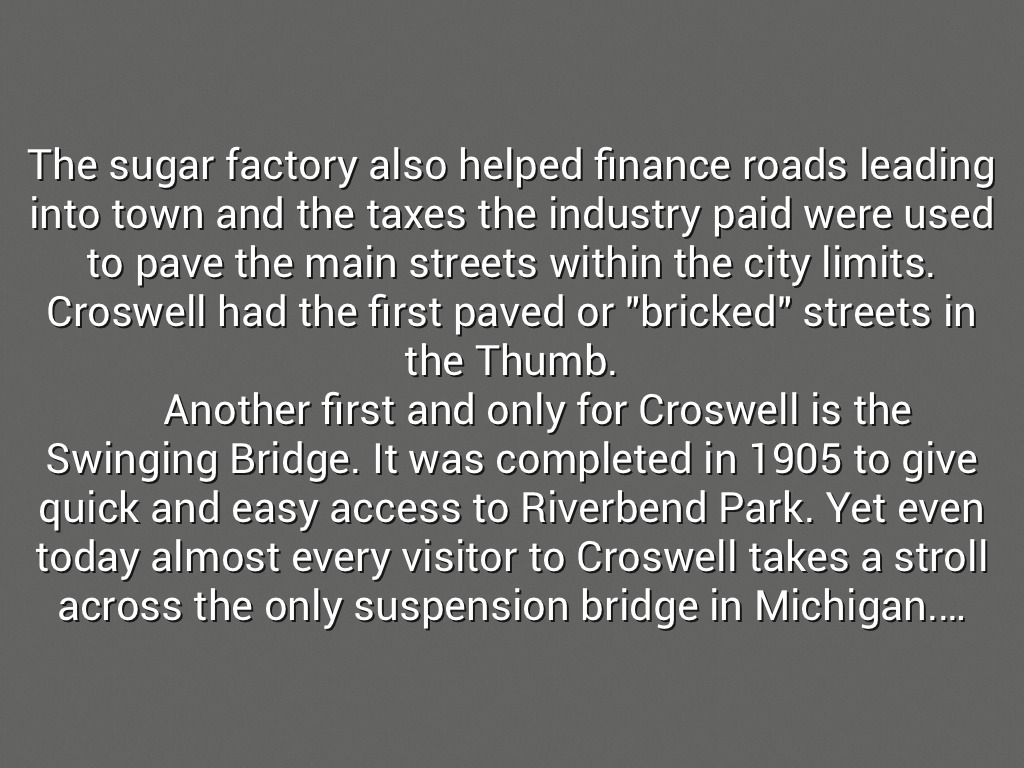Croswell had the first paved or "bricked" streets in the Thumb.
