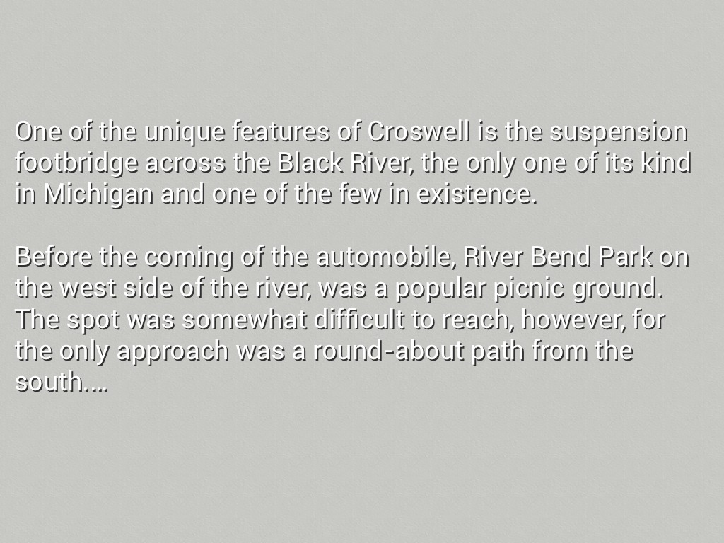 One of the unique features of Croswell is the suspension footbridge across the Black River, the only one of its kind in Michigan and one of the few in existence.