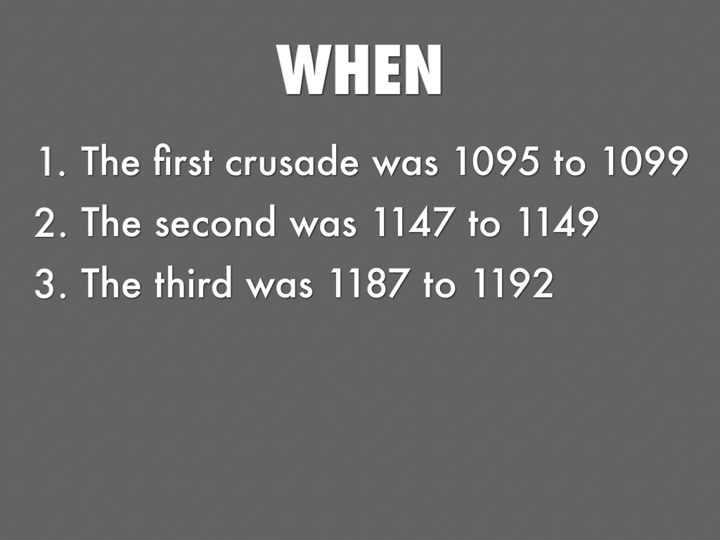 The first crusade was 1095 to 1099