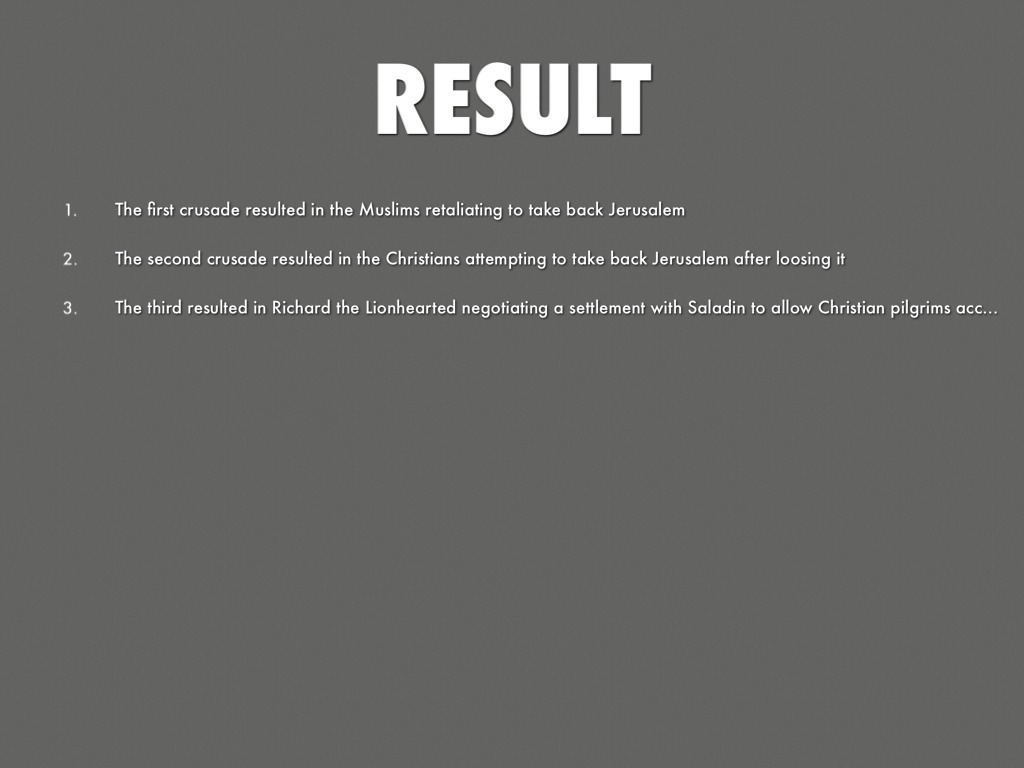 The first crusade resulted in the Muslims retaliating to take back Jerusalem