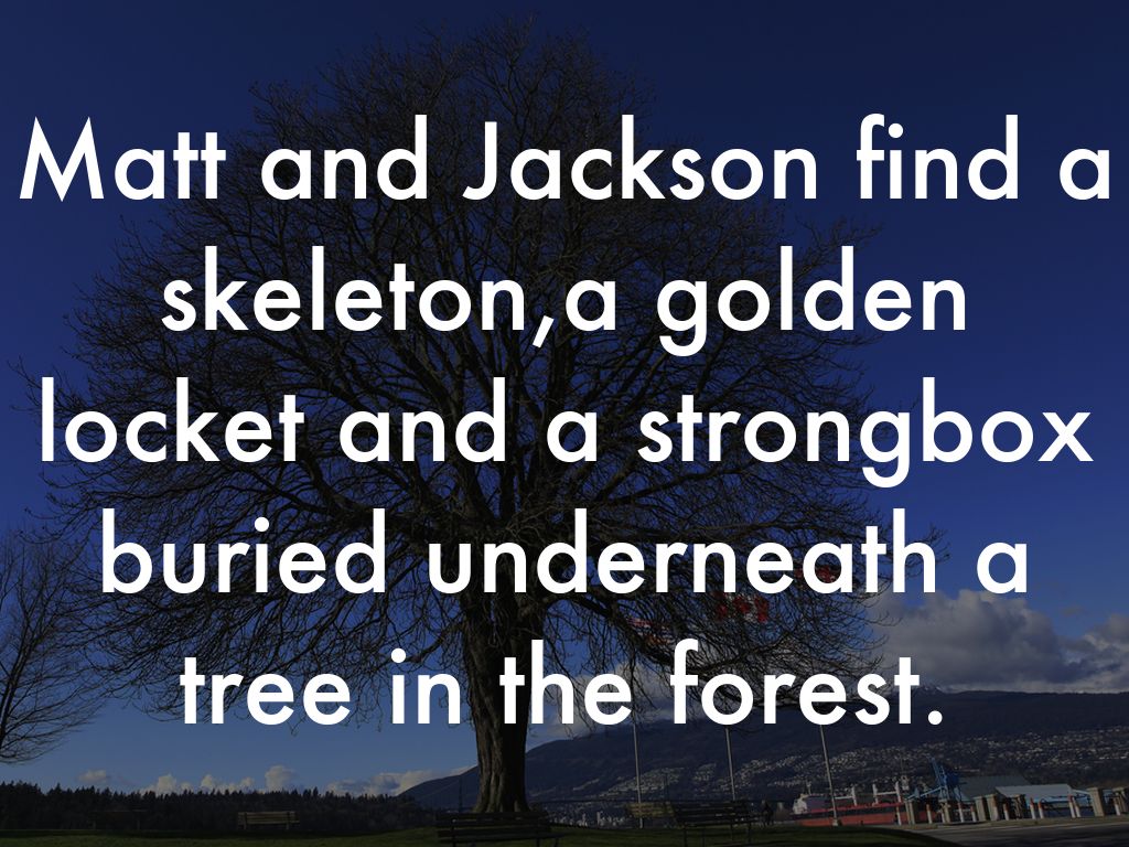 Matt and Jackson find a skeleton,a golden locket and a strongbox buried underneath a tree in the forest.