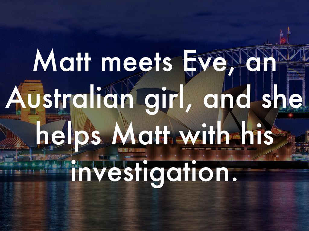 Matt meets Eve, an Australian girl, and she helps Matt with his investigation.