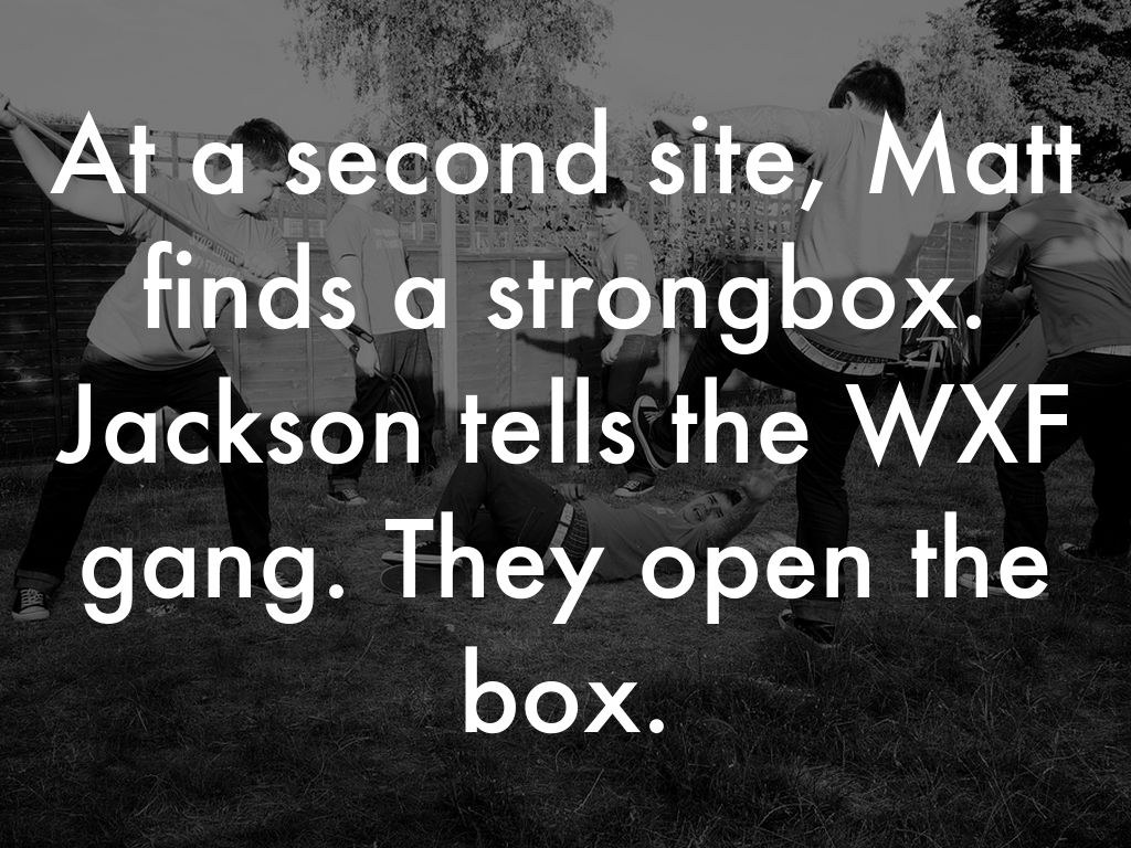 At a second site, Matt finds a strongbox. Jackson tells the WXF gang. They open the box.