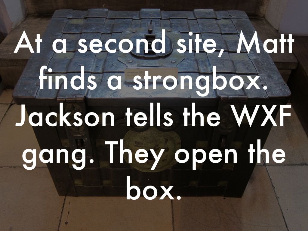 The strongbox has a number of useful geological artifacts which are of no interest to the WXK gang but are of interest to Geologists and the local museum.