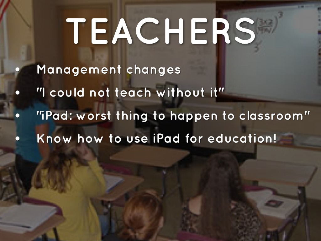 When it comes to classroom management, they said that the management isn't more difficult, it's just different. Instead of watching for the signs of someone texting under their desk, they need to watch for someone playing on their iPad when they shouldn't be. Some have resorted to having certain times during the class period when iPads should be closed or put away.