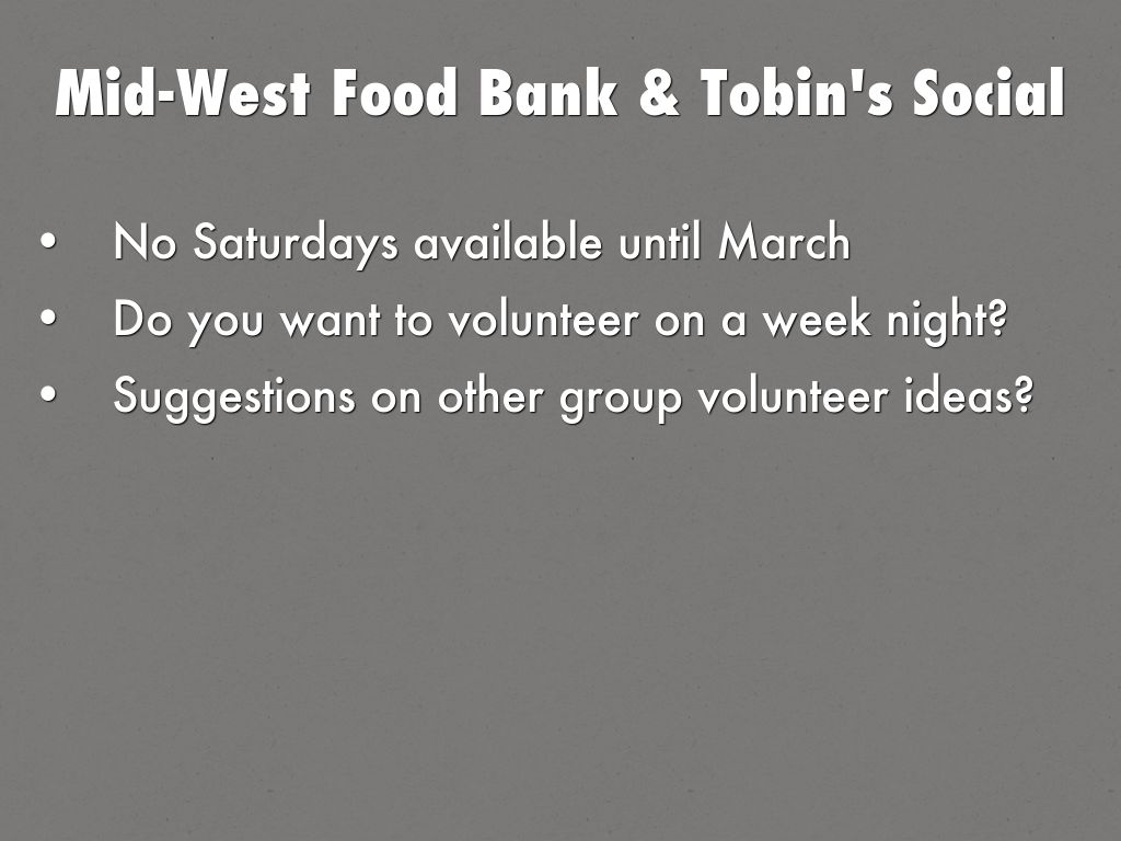 12:00-2:00pm Volunteer at Mid-West Food Bank as duties are assigned
