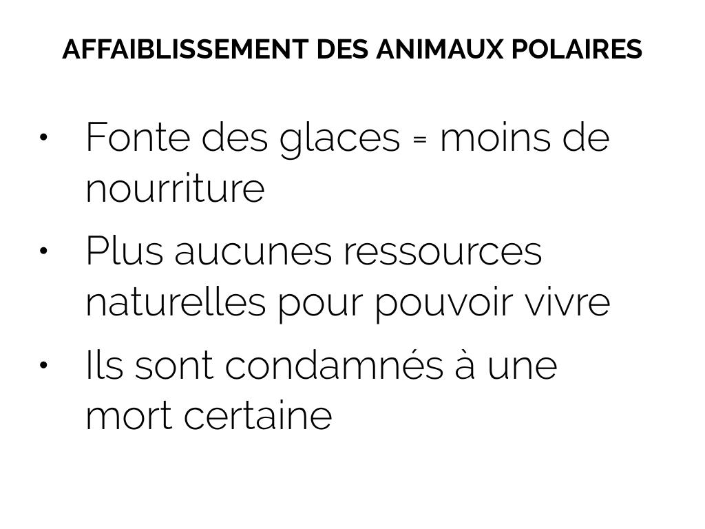AFFAIBLISSEMENT DES ANIMAUX POLAIRES