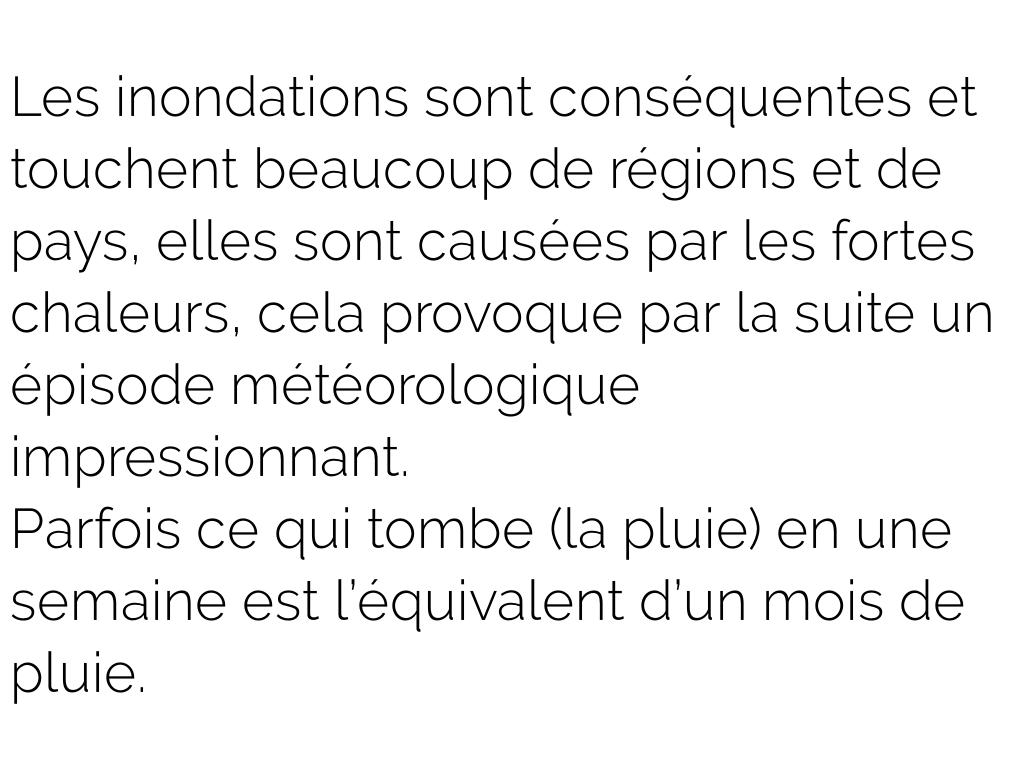 Les inondations sont conséquentes et touchent beaucoup de régions et de pays, elles sont causées par les fortes chaleurs, cela provoque par la suite un épisode météorologique impressionnant.