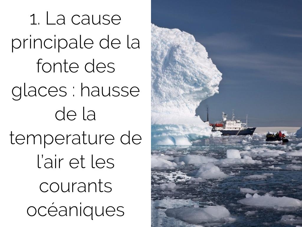 1. La cause principale de la fonte des glaces : hausse de la temperature de l’air et les courants océaniques