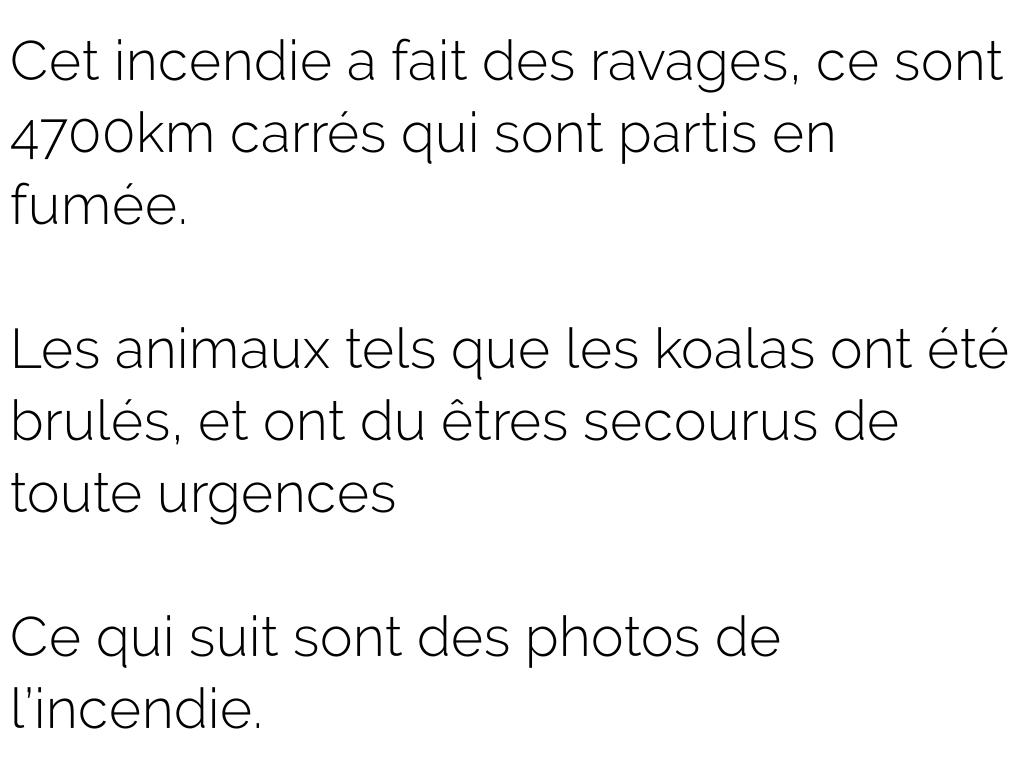Cet incendie a fait des ravages, ce sont 4700km carrés qui sont partis en fumée.
