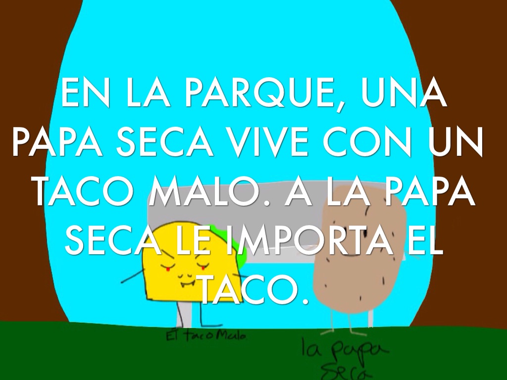 EN LA PARQUE, UNA PAPA SECA VIVE CON UN TACO MALO. A LA PAPA SECA LE IMPORTA EL TACO.