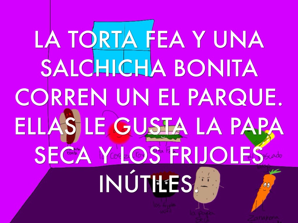LA TORTA FEA Y UNA SALCHICHA BONITA CORREN UN EL PARQUE. ELLAS LE GUSTA LA PAPA SECA Y LOS FRIJOLES INÚTILES.