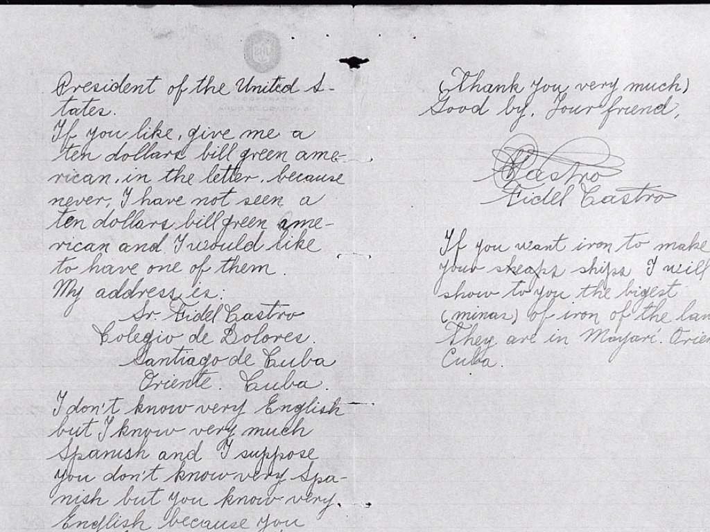 Fidel Castro wrote a letter to F.D.R. Asking for a ten dollar bill