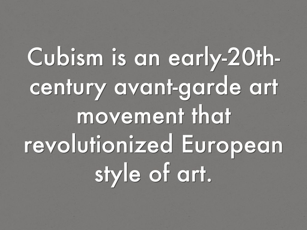 Cubism is an early-20th-century avant-garde art movement that revolutionized European style of art.