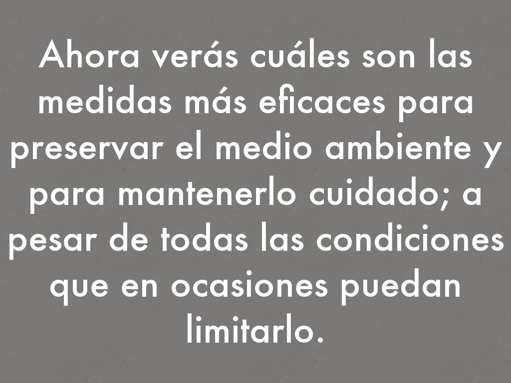 Ahora verás cuáles son las medidas más eficaces para preservar el medio ambiente y para mantenerlo cuidado; a pesar de todas las condiciones que en ocasiones puedan limitarlo.