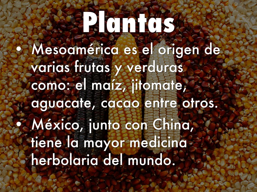 Mesoamérica es el origen de varias frutas y verduras como: el maíz, jitomate, aguacate, cacao entre otros.