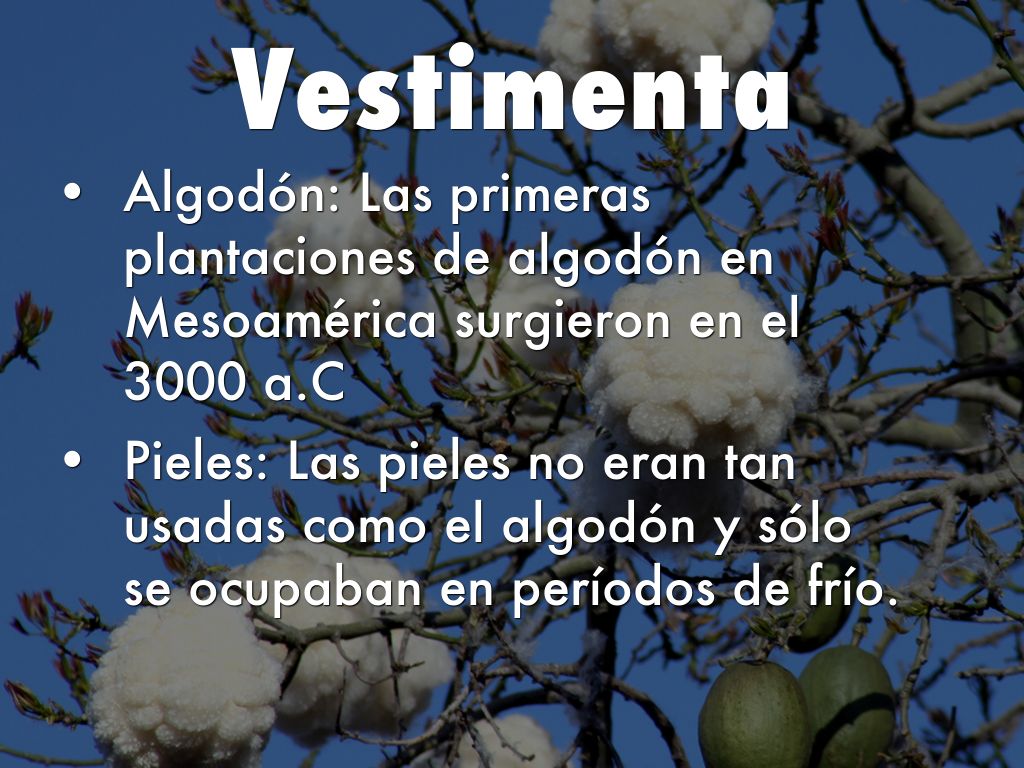 Algodón: Las primeras plantaciones de algodón en Mesoamérica surgieron en el 3000 a.C