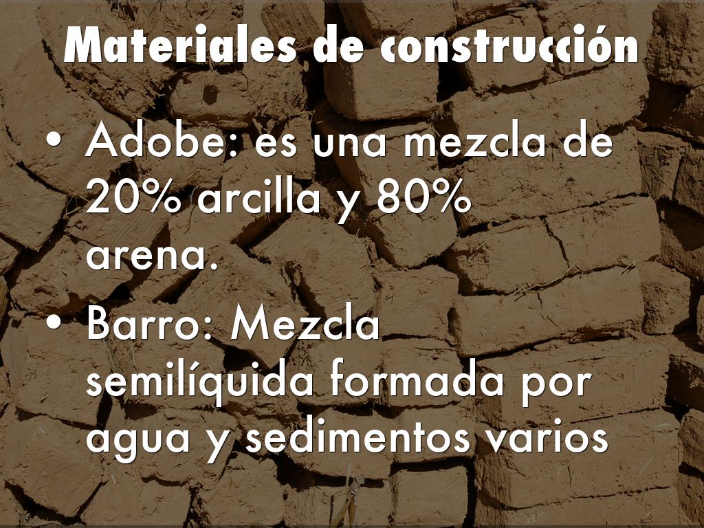 Adobe: es una mezcla de 20% arcilla y 80% arena.
