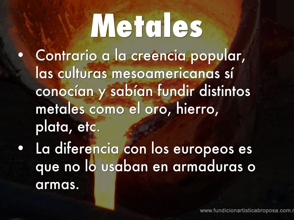 Contrario a la creencia popular, las culturas mesoamericanas sí conocían y sabían fundir distintos metales como el oro, hierro, plata, etc.