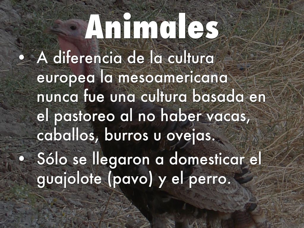 A diferencia de la cultura europea la mesoamericana nunca fue una cultura basada en el pastoreo al no haber vacas, caballos, burros u ovejas.