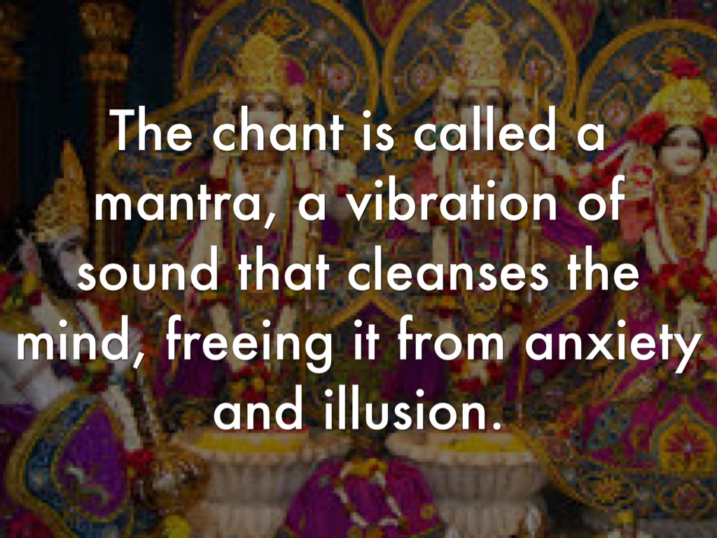 The chant is called a mantra, a vibration of sound that cleanses the mind, freeing it from anxiety and illusion.