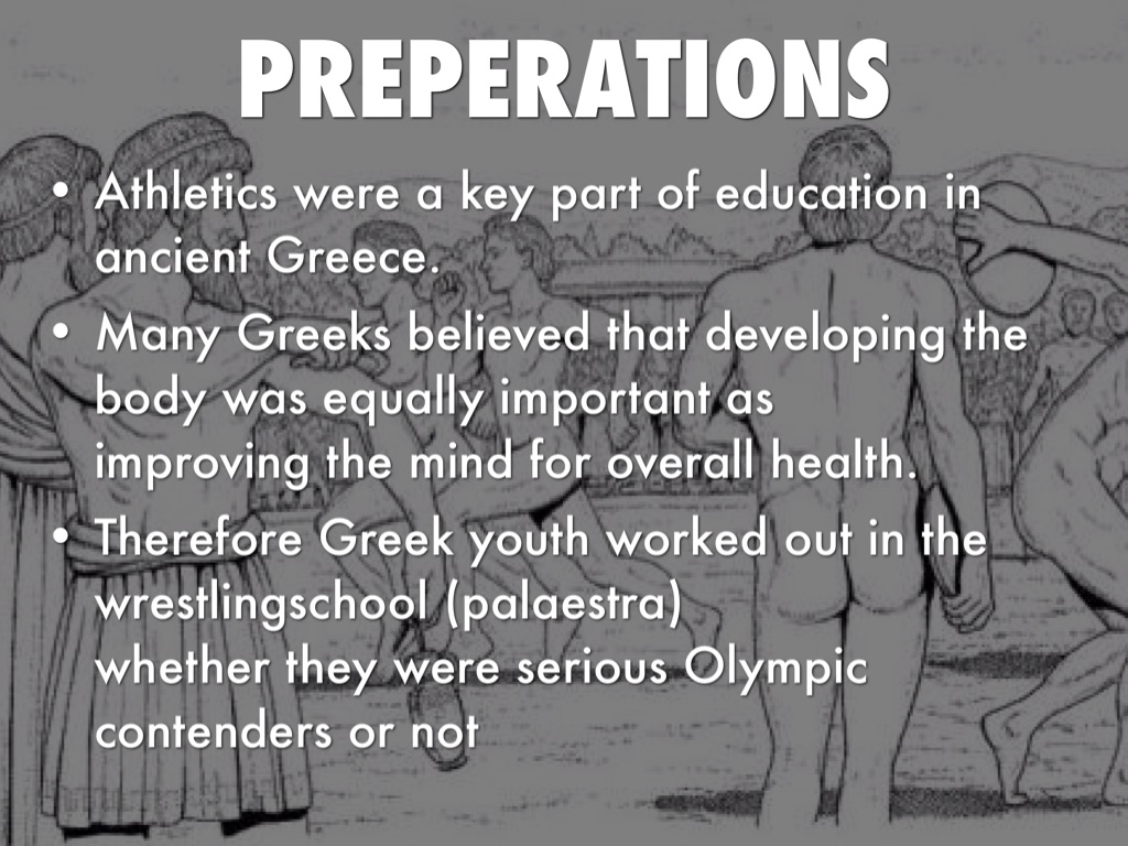 Every athlete participating in the games had to arrive in Elis at least one month prior to the start of the games and remain in Elis to train under the watchful eye of the Elean judges until the games began. Once admitted, athletes could not withdraw from competition.