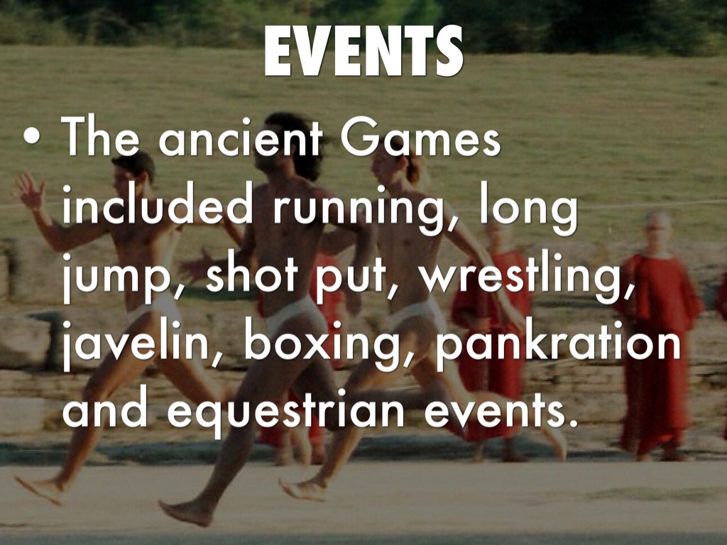 Slaves and barbaroi, nonGreeks, could not compete at the games. In addition, any man who had committed a crime or stolen from a temple was barred from participation.