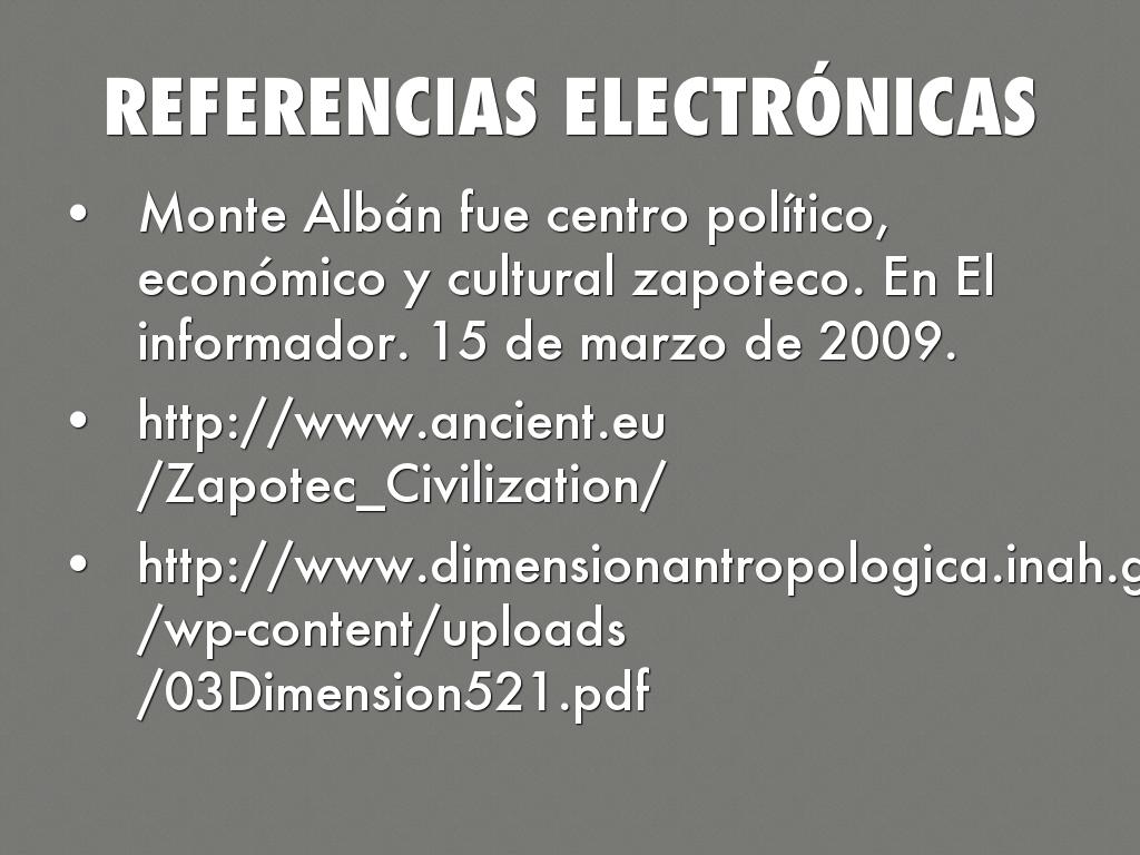 Monte Albán fue centro político, económico y cultural zapoteco. En El informador. 15 de marzo de 2009.