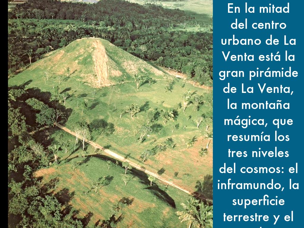 En la mitad del centro urbano de La Venta está la gran pirámide de La Venta, la montaña mágica, que resumía los tres niveles del cosmos: el inframundo, la superficie terrestre y el cielo.