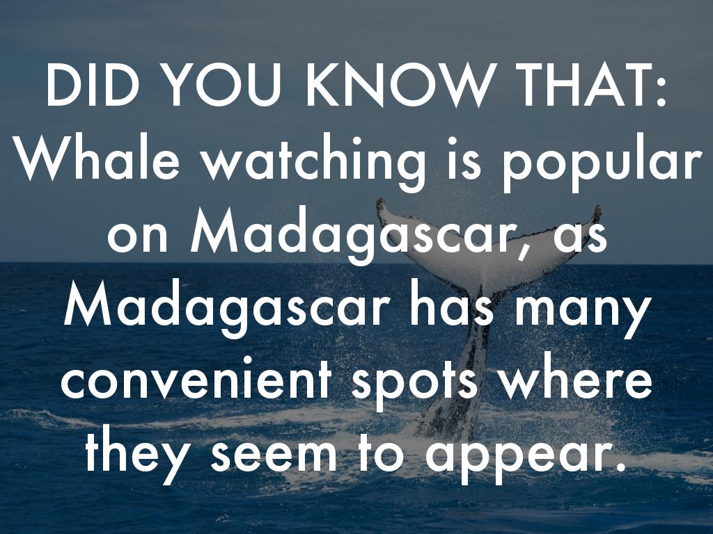 Whale watching is popular on Madagascar, as Madagascar has many convenient spots where they seem to appear.