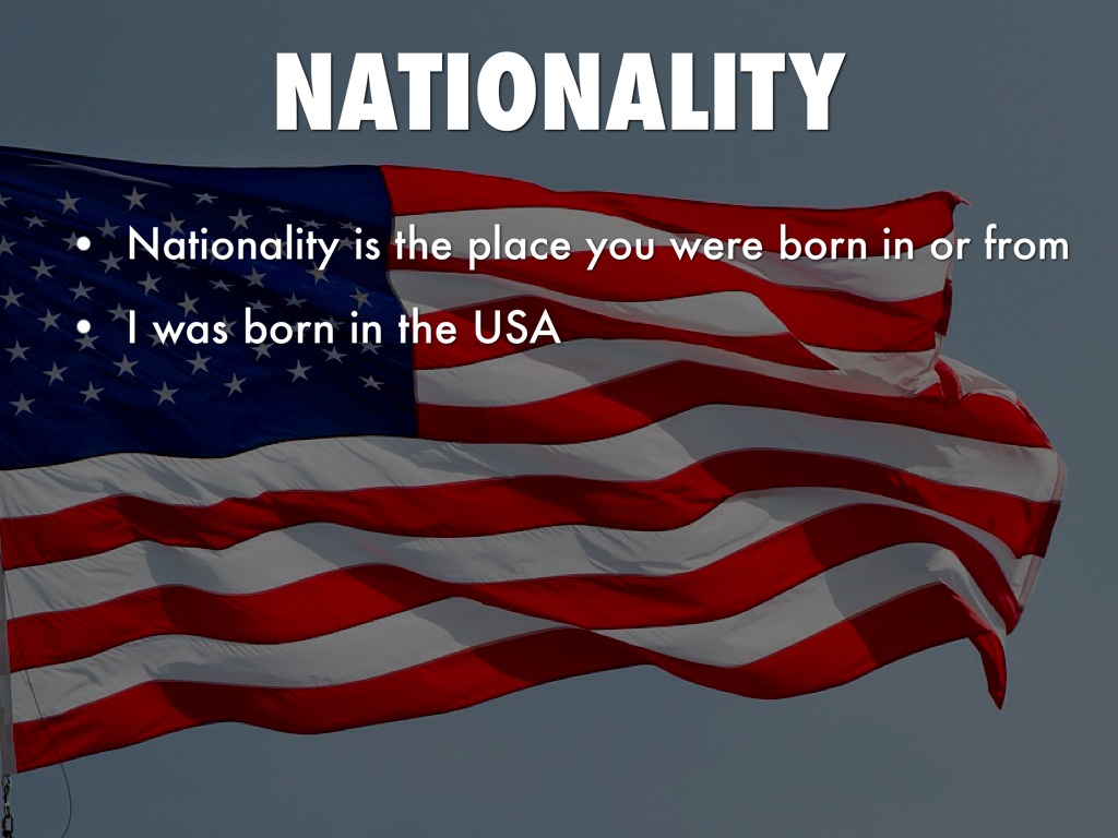 • Nationality is the place you were born in or from