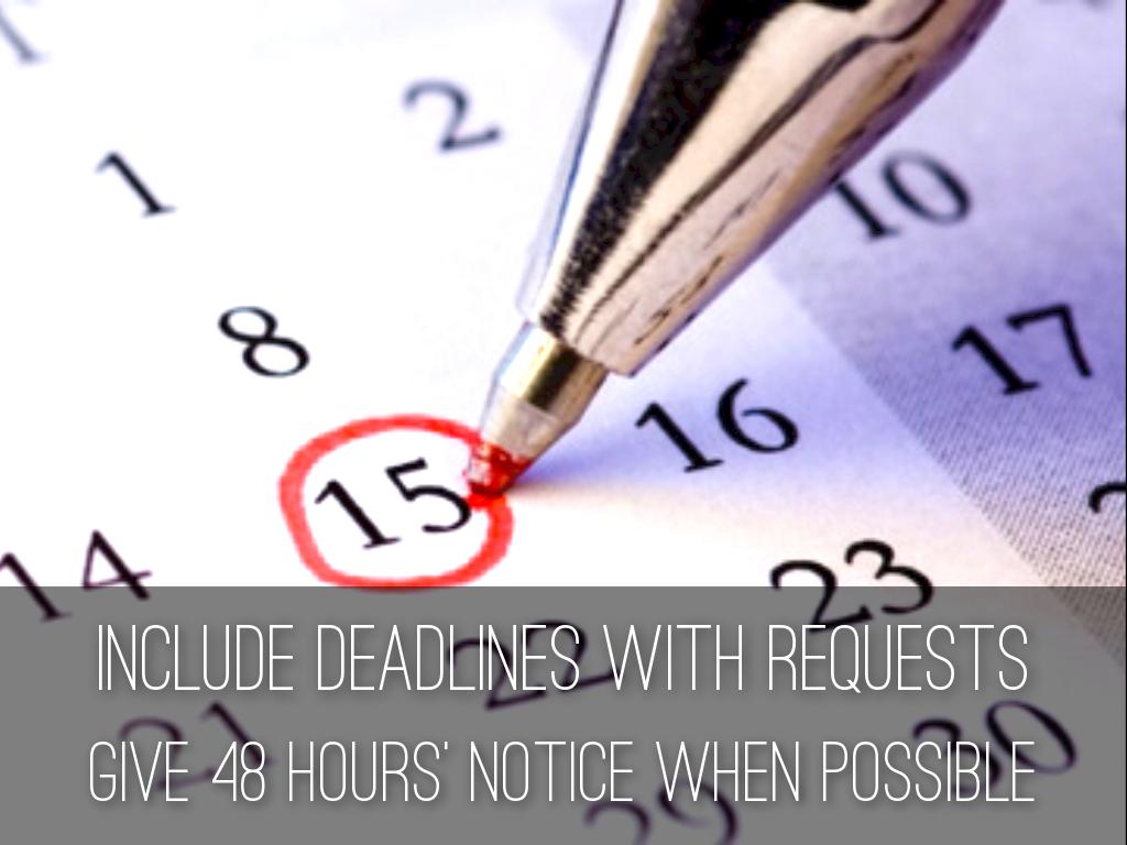 INCLUDE DEADLINES WITH REQUESTS