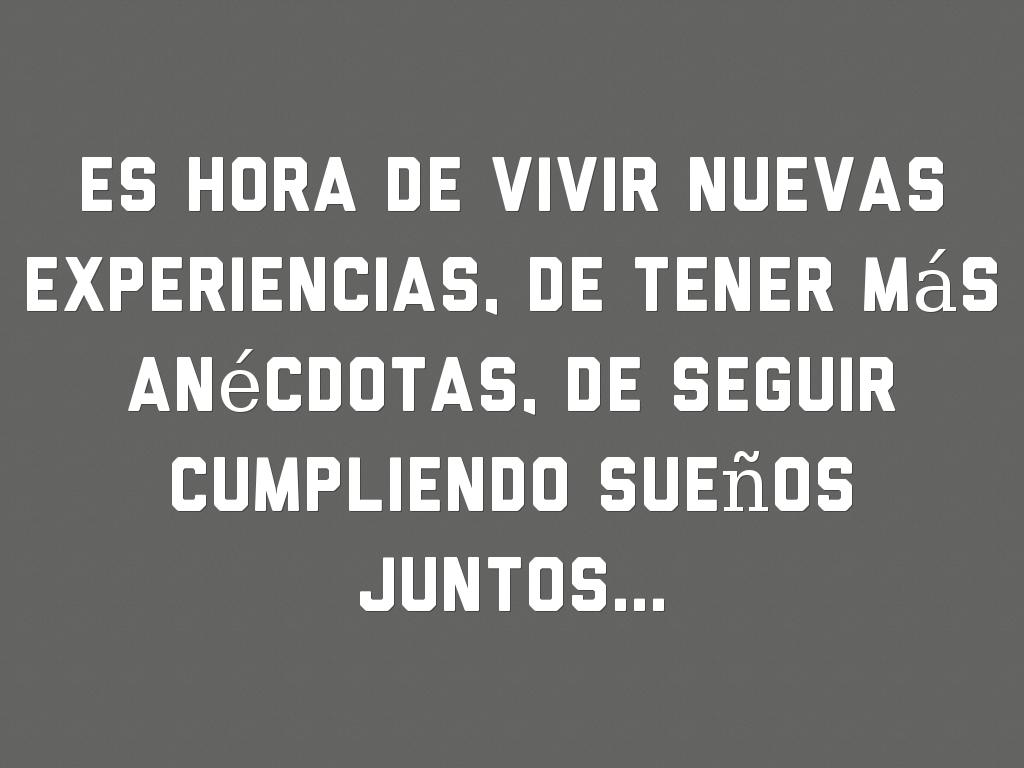 Es hora de vivir nuevas experiencias, de tener más anécdotas, de seguir cumpliendo sueños juntos...