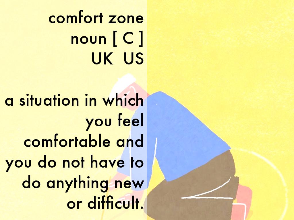a situation in which you feel comfortable and you do not have to do anything new or difficult.