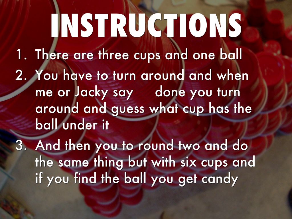 • You have to turn around and when me or Jacky say done you turn around and guess what cup has the ball under it