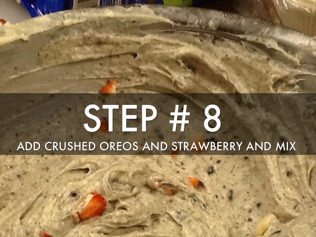 ADD CRUSHED OREOS AND STRAWBERRY AND MIX