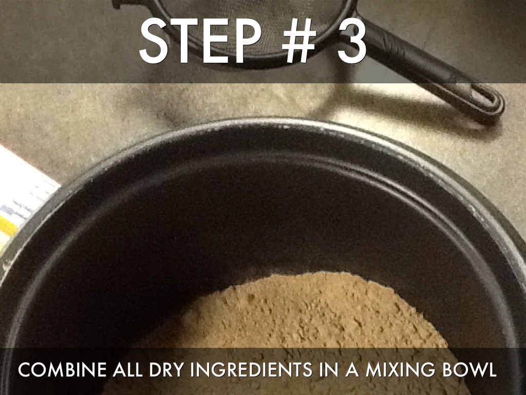 COMBINE ALL DRY INGREDIENTS IN A MIXING BOWL