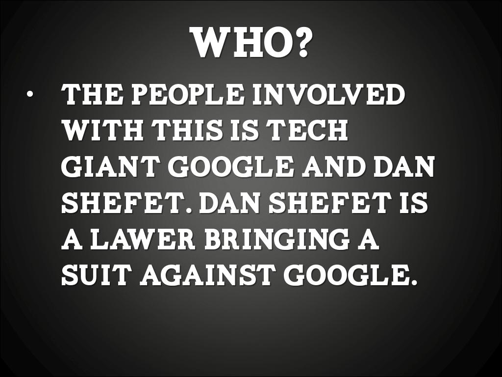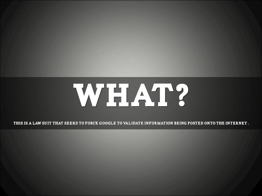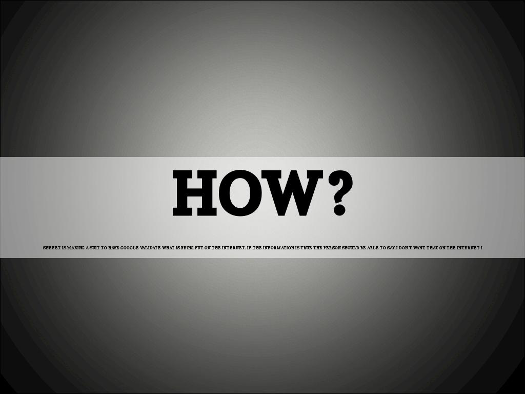 SHEFET IS MAKING A SUIT TO HAVE GOOGLE VALIDATE WHAT IS BEING PUT ON THE INTERNET. IF THE INFORMATION IS TRUE THE PERSON SHOULD BE ABLE TO SAY I DON’T WANT THAT ON THE INTERNET I