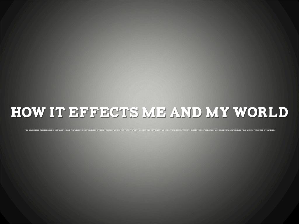 THIS IS IMPACTFUL TO ME BECAUSE I DONT WANT TO HAVE PEOPLE SENDING UNVALIDATED INTERNET POSTS ON LINE. I DON’T WANT PEOPLE TO MAKE UP FAKE NEWS ABOUT ME AND ANYONE. SO I WANT THIS TO HAPPEN WORLDWIDE AND NO MORE FAKE NEWS AND VALIDATE WHAT IS BEING PUT ON THE INTERVENER.