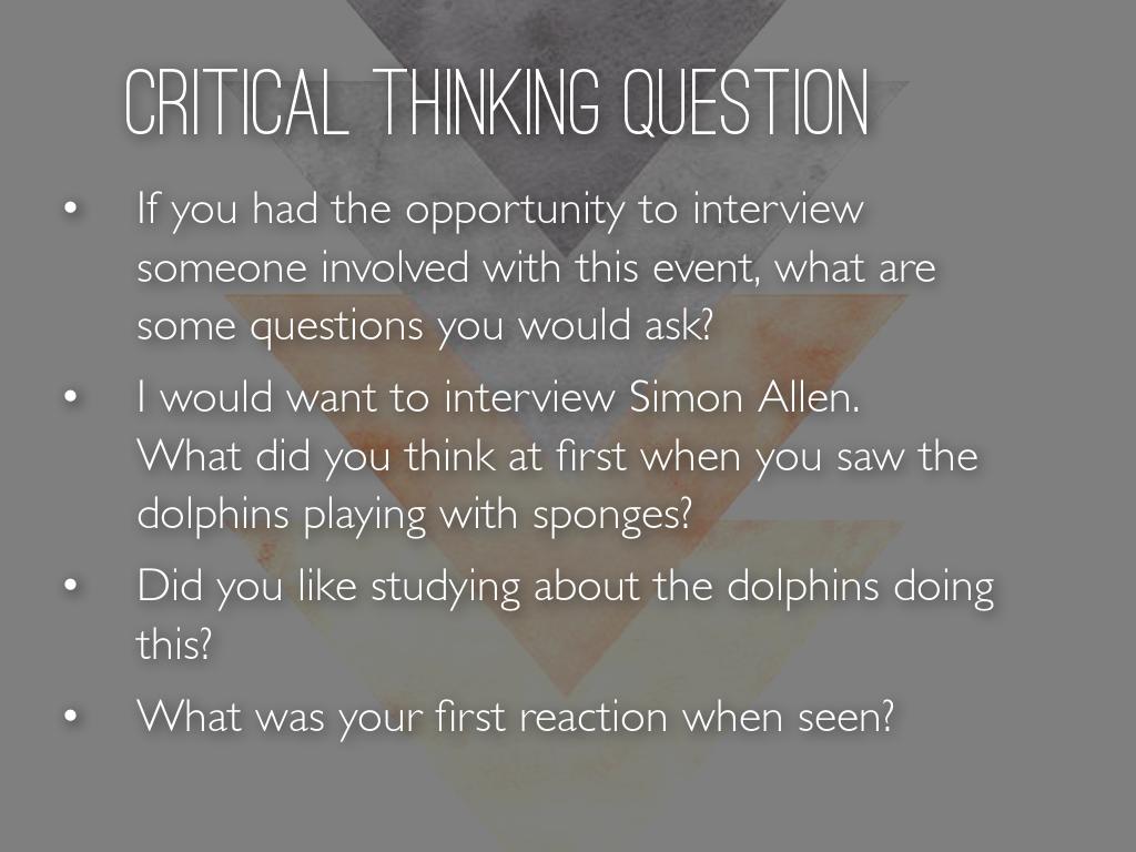 I would want to interview Simon Allen. What did you think at first when you saw the dolphins playing with sponges?