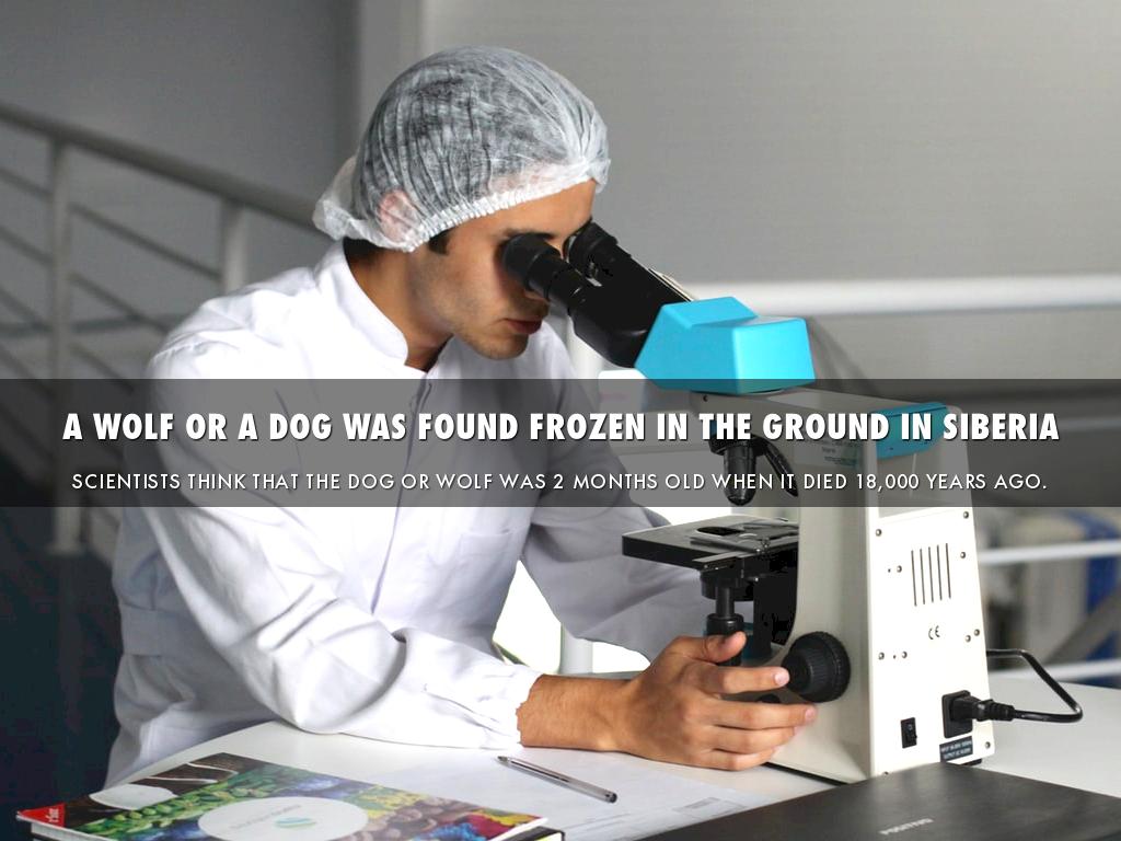 SCIENTISTS THINK THAT THE DOG OR WOLF WAS 2 MONTHS OLD WHEN IT DIED 18,000 YEARS AGO.