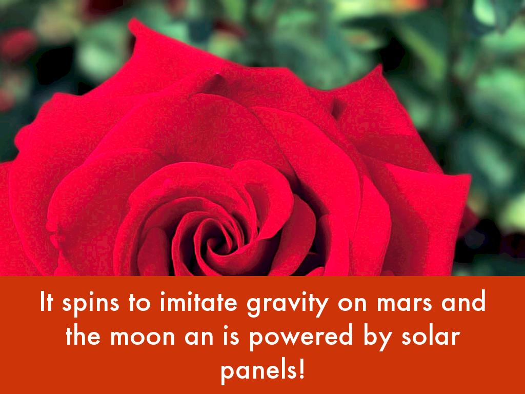 It spins to imitate gravity on mars and the moon an is powered by solar panels!