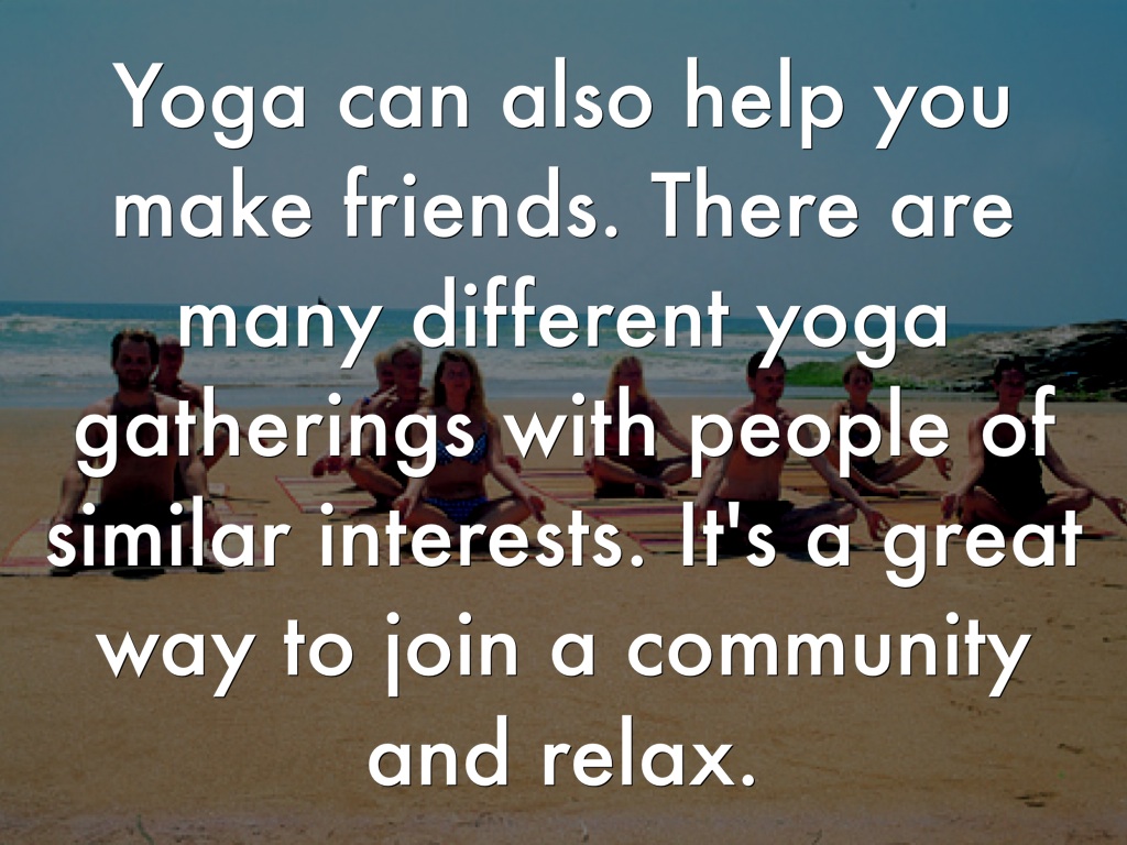 Yoga can also help you make friends. There are many different yoga gatherings with people of similar interests. It's a great way to join a community and relax.