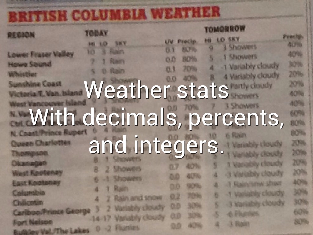 With decimals, percents, and integers.